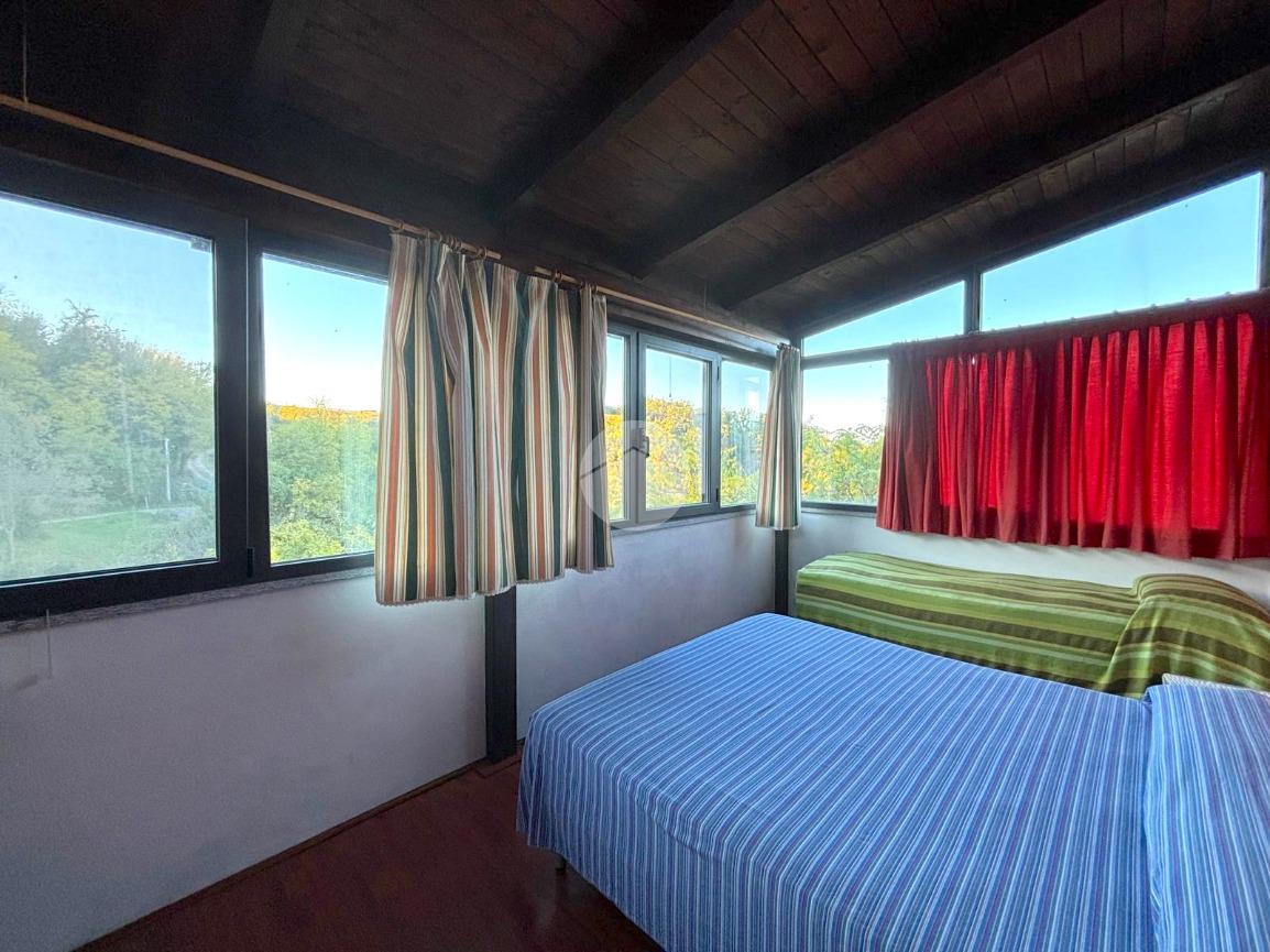 Salendo al primo piano, la zona notte offre una camera matrimoniale, una cameretta e un secondo bagno, oltre a una veranda luminosa, perfetta come studio, sala lettura o area relax, con vista panoramica sul bosco circostante. Ogni ambiente è caratterizzato da luminosità naturale, ariosità e un’atmosfera calda e accogliente.